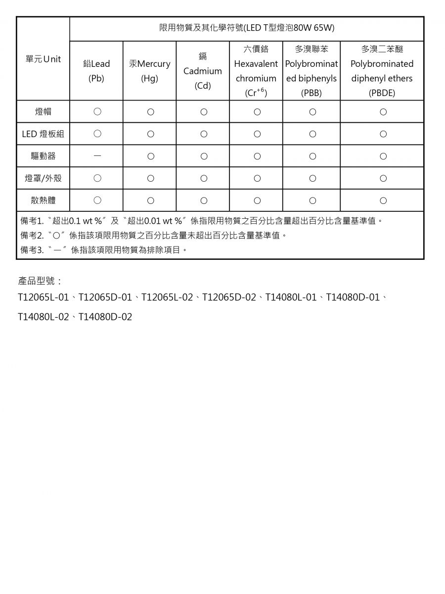 設備名稱:安定器內藏式發光二極體(LED)燈泡(LED T型燈泡65W-85W)
